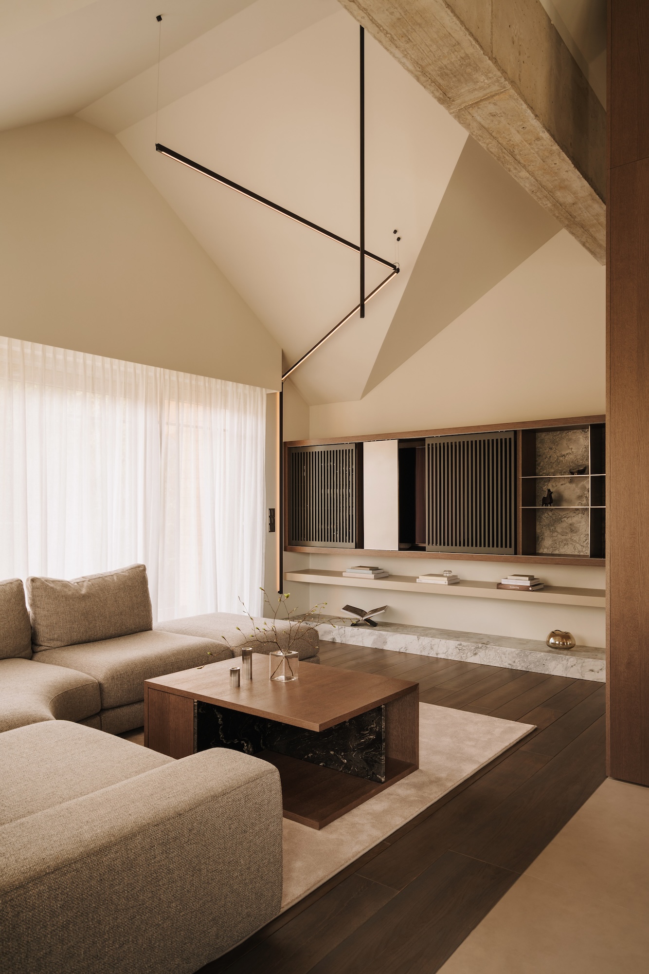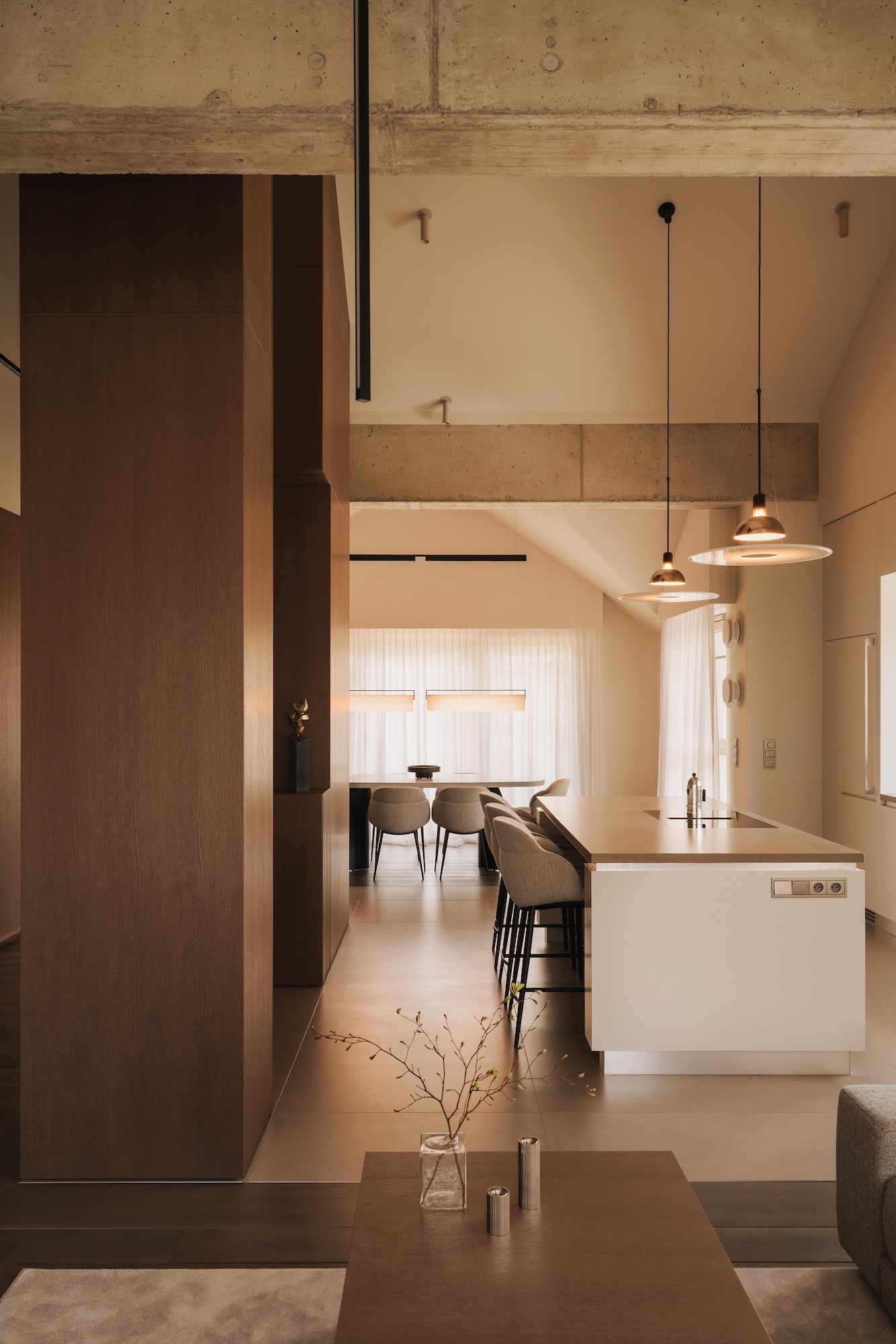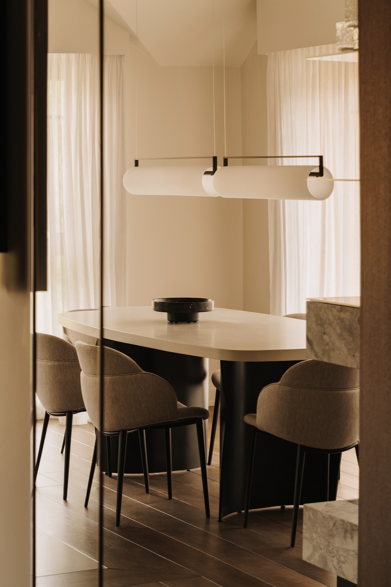 Wnętrze górskiego apartamentu zostało zaprojektowane z wyjątkową dbałością o każdy detal. Starannie dobrane oświetlenie idealnie wpisuje się w charakter aranżacji i skutecznie wypełnia wymagającą przestrzeń z wysokimi sufitami. W tym projekcie główną rolę odgrywa oświetlenie dekoracyjne, które buduje klimat i podkreśla charakter wnętrza, natomiast oświetlenie techniczne subtelnie dopełnia całość, pozostając niemal niewidoczne.